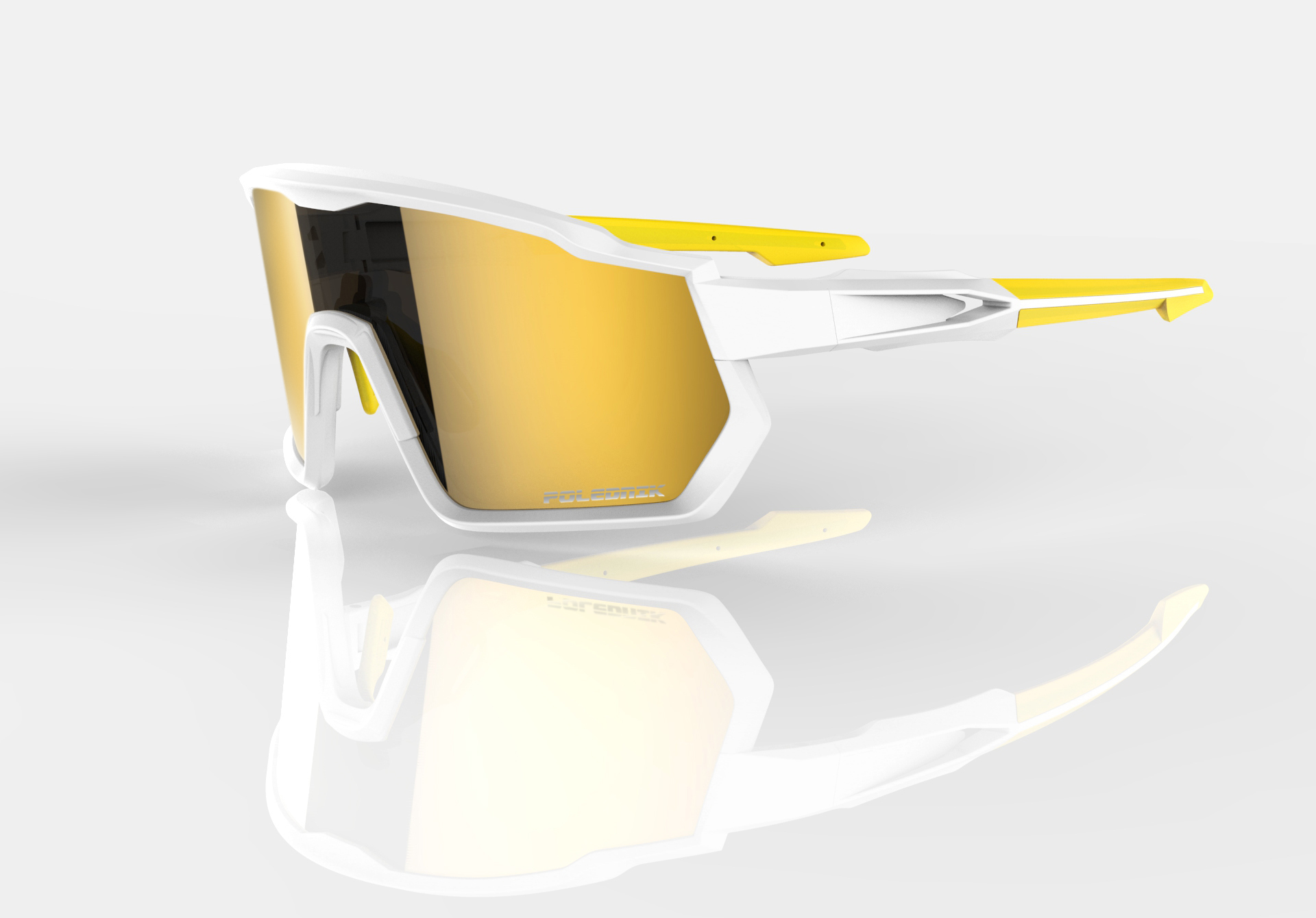 BRÝLE: rámeček a čočka jsou vyrobeny z lesklého bílého polykarbonátu (= poskytuje kombinaci pevnosti, výjimečné nárazuvzdornosti a tepelné odolnosti). Konce nožek a nastavitelný nosník jsou z TPR ( thermoplastic rubber= termoplastická guma=je měkká a proto poskytuje komfort při nošení a zároveň má protiskluzové vlastnosti).