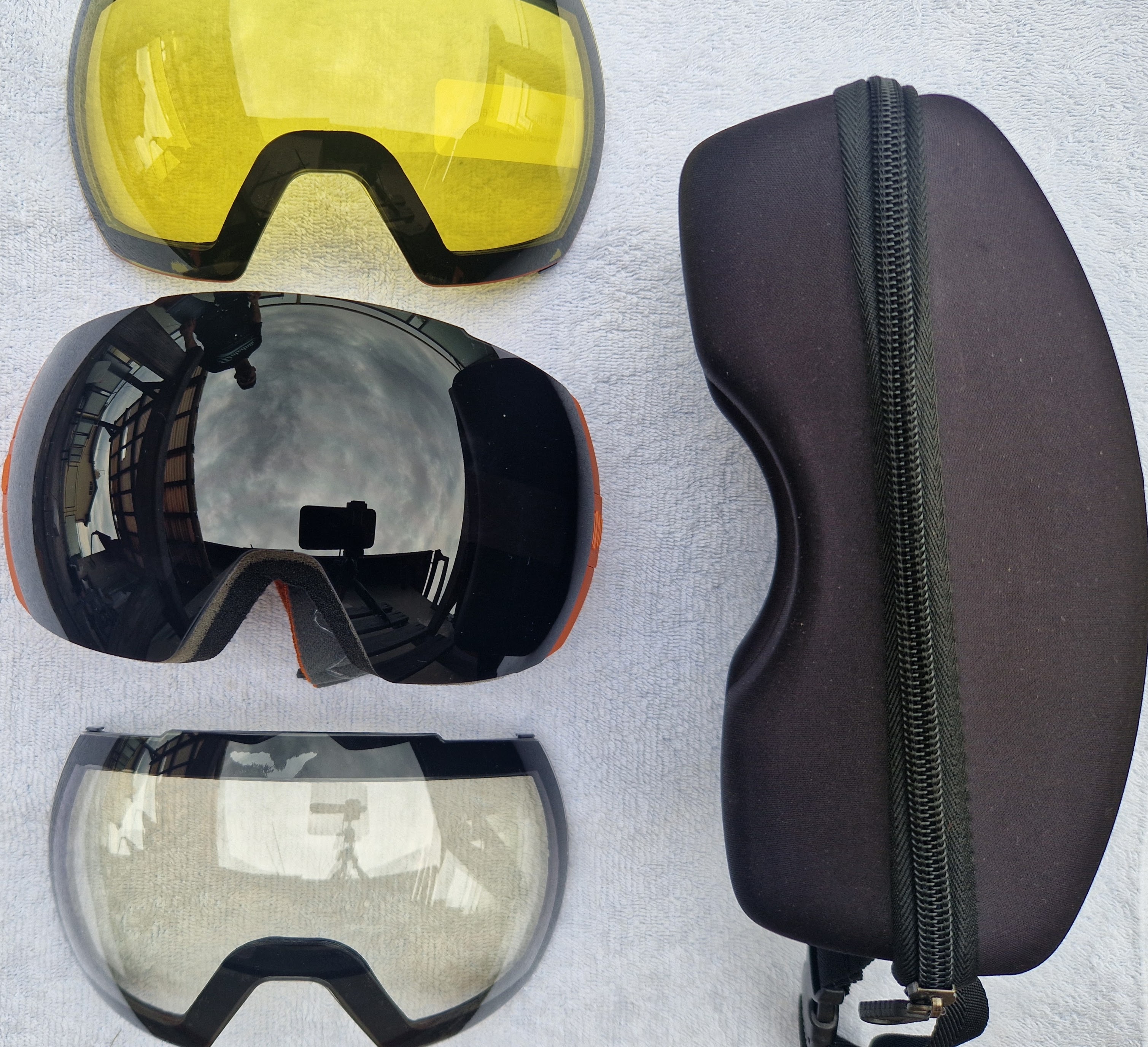 Kompletní balení zahrnuje brýle, tři skla, pevné pouzdro na zip.