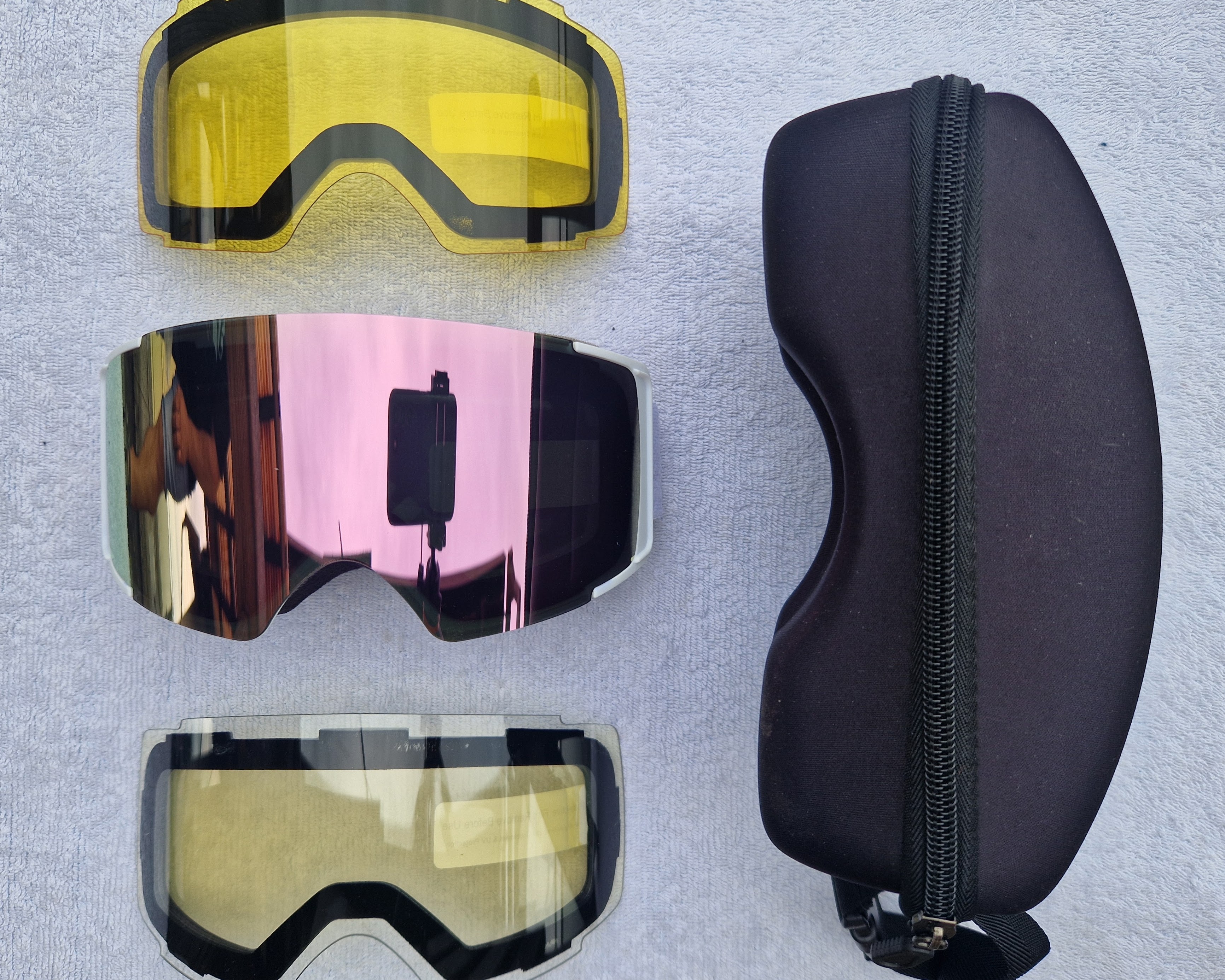 Kompletní balení zahrnuje brýle, tři skla, pevné pouzdro na zip.